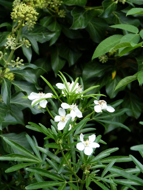 Meine Choisya ternata Aztec Pearl bekommt gerade eine zweite Blüte.