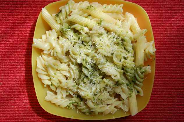 *Heute gab es Nudeln mit Rucolapesto (Rucola, Knoblauch, Parmesan, Pinienkerne, Balsamicoessig, Olivenöl) und Parmesan extra.