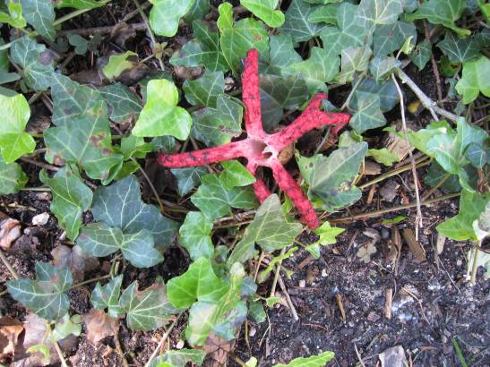 Clathrus archeri. Mal wieder. Igitt. Ruht inzwischen in zugeknoteter Tüte in der Mülltonne.