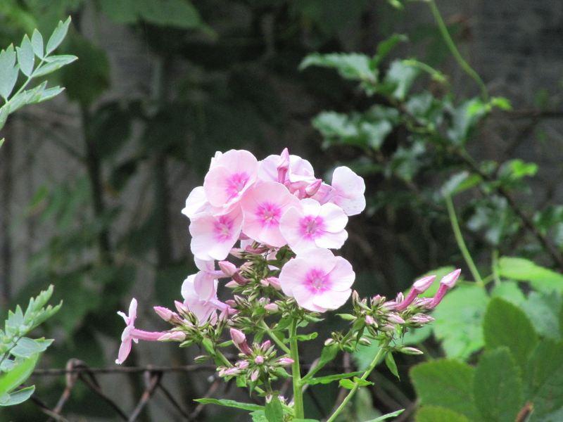 Jetzt ist auch 'Lichtblick' aufgeblüht - offensichtlich ein robuster Phlox, der recht hoch wird. Für das Photo musste ich etwas zoomen, ich wäre im Moment ohne Kollateralschäden zu verursachen nicht näher rangekommen. Die Höhe lässt sich vielleicht mit Blick auf den ollen Gartenzaun dahinter erahnen.