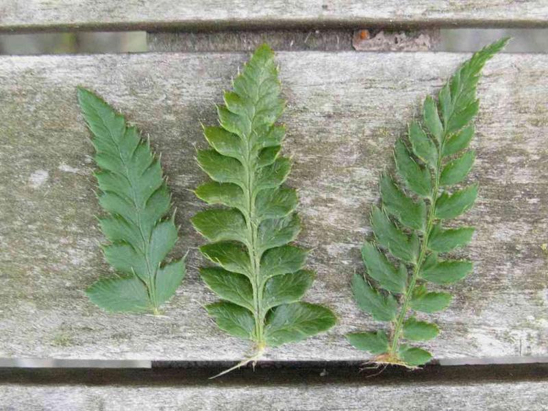 Diesen Farn, der bei mir inzwischen in drei Exemplaren aufgelaufen ist, habe ich hier schon einmal ohne Bestimmungsergebnis gezeigt.Nun wage ich einen zweiten Versuch.Ich halte ihn für einen Polystichum. Aber es scheint weder Polystichum aculeatum noch P. setiferum zu sein.Polystichum polyblepharum, den ich hier auch schon einmal als Kübelpflanze hatte, wurde beim letzten Bestimmungsversuch hier negiert.