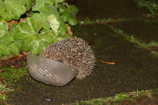 Wir hatten unser Igelchen letzten Sonntag eingefangen und gewogen. Da brachte es knapp 400 g auf die Waage. Nach Rücksprache mit der Igelstation haben wir ihn einige Tage in einen großen karton gesetzt mit Futter und Laub zum Vestecken. Er hat fast 50 g zugenommen! Jetzt ist er wieder an seiner gewohnten Stelle (ein Haufen dicker Stämme und Zweige, die dort schon lange liegen, und über die ich das ganze Laub kippe), das Futter steht schön geschützt in der Nähe und er bedient sich ausgiebig jeden Abend. Ich lege jetzt auch immer ein bisschen Trockenfutter für Katzen dazu, das wurde mir für Frosttage empfohlen.LGoile