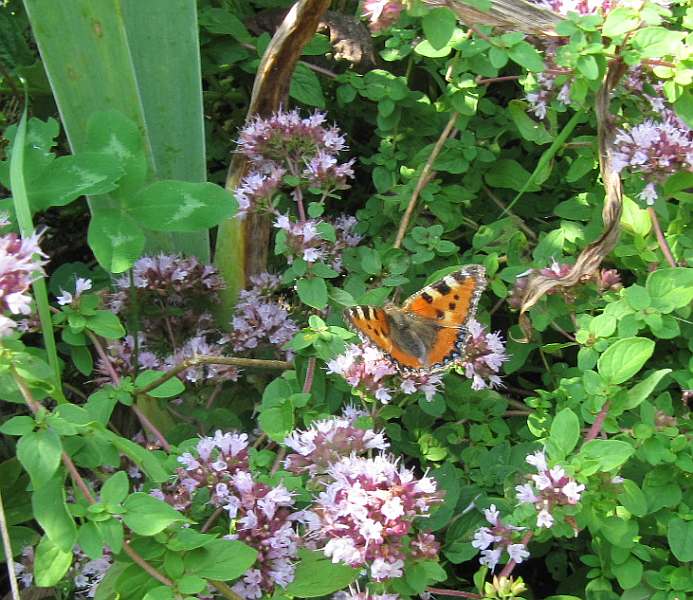 Am Oregano und bei den Alliümmern ist heute ein richtige Getümmel gewesen. Fotografieren konnte ich das schlecht. Hier ein Kleiner Fuchs.