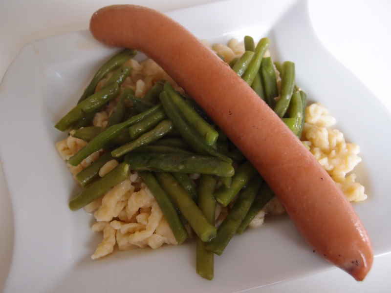 saure gartenbohnen mit knöpfle und knackwurst