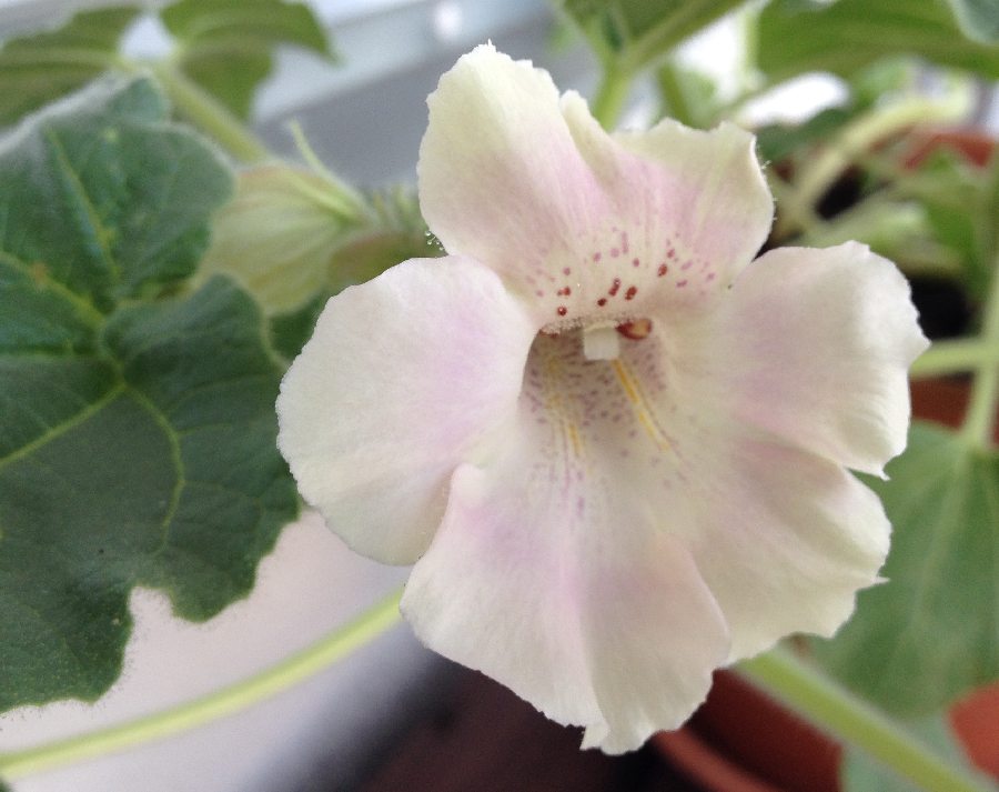 Ich grabe diesen alten Thread mal wieder aus, um die schönen Blüten von Proboscidea louisianica fragrans zu zeigen. Nach Aussaat im März haben sich die Pflanzen ziemlich rasch entwickelt und blühen nun auf dem Balkon. Die Blätter sind mit klebrigen Tröpfchen bedeckt und verströmen bei Berührung einen unangenehmen Geruch (irgendwie zwischen verschwitzte Socke und angeschmorten Haaren ).