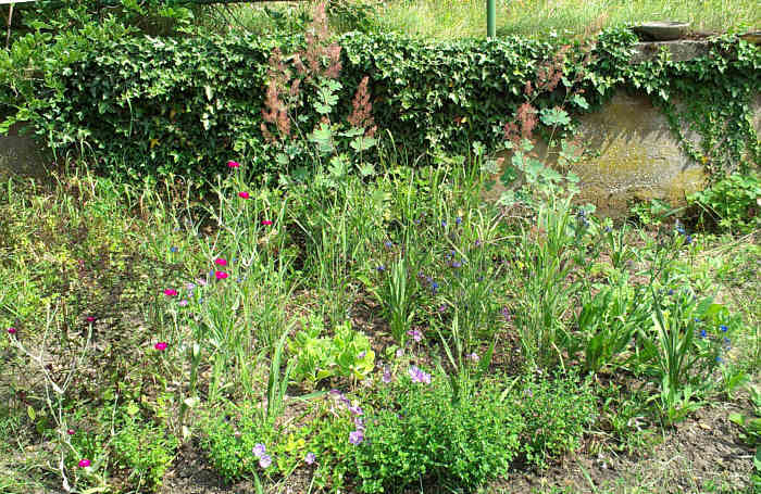 Hallo liebe Purler,nachdem ich trotz schönen Wetters brav drinnen bleiben muss (krank), kam ich tatsächlich mal dazu, die Photos meiner Handykamera zu sortieren.Eigentlich sollte im Frühjahr bei uns ein Dachgarten entstehen - genauer eine Art "eingebauter" Balkon mit grooooßen, umlaufenden Pflanzkübeln.Voll Vorfreude habe ich die Pflanzen bestellt (wegen Versandstopp im Sommer) - und kurz nach Erhalt der Ware erfahren, dass sich alles verschiebt. Ich warte immernoch auf meinen Dachgarten.Die Pflanzen habe ich in weiser Vorahnung dann in mein Tomatenbeet gepflanzt und nicht nur eingeschlagen. Dann war ich 6 Wochen nicht mehr im Garten.gepflanzt habe ich:3 Anchusa azurea 'Loddon Royalist'6 Calamintha nepeta 'Triumphator (nepeta ssp.nepeta)'6 Eryngium yuccifolium4 Geranium wallichianum 'Rozanne' 5 Liatris scariosa 'Alba'8 Macleaya microcarpa (cordata hort.) 'Spetchley Ruby' 14 Panicum virgatum 'Shenandoah'7 Penstemon hirsutus 'Pygmaeus'6 Sedum spectabile 'Stardust'6 Selinum wallichianumund im Sept. noch 3 Agastache von SarastroDie ersten2 (schlechten - sorry) Bilder entstanden 7 Wochen nach der Pflanzung ohne gegliche Pflege.