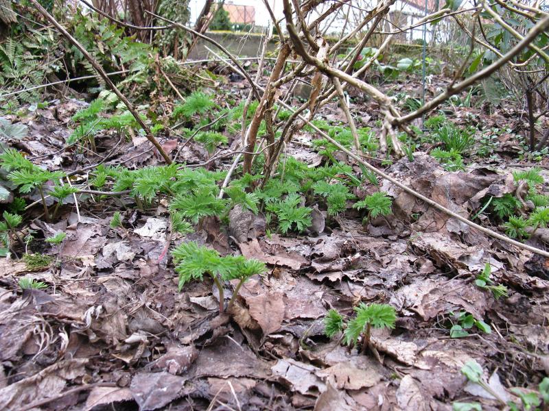 Dafür beginnen die "wilden" Sämlinge aus den D. eximia/formosa Komplex im Waldgarten durch dicke Laubauflagen zu sprießen. :D