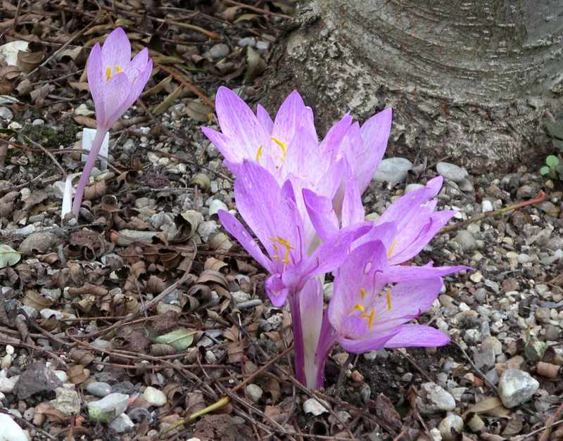 Ich habe begonnen, die Flächen zu krauten, auf denen ich Herbstkrokusse und -zeitlose erwarte. Die ersten Colchicum sind da.