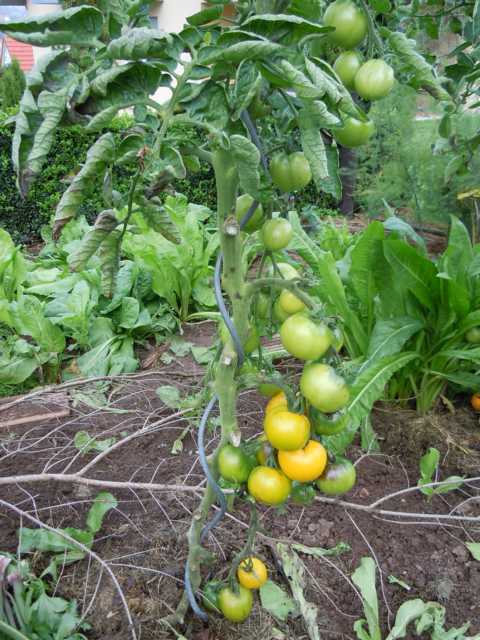 Ich hatte dieses Jahr im Lehmgarten nur 4 Tomaten (ohne Schutz von oben).Rideau SweetIldyTschernomoreine namenlose WildtomateAlle hatten wunderbar angesetzt und alle sind nach dem nassen August von der Braunfäule dahingerafft worden. Am längsten hatte es noch Ildy ausgehalten.