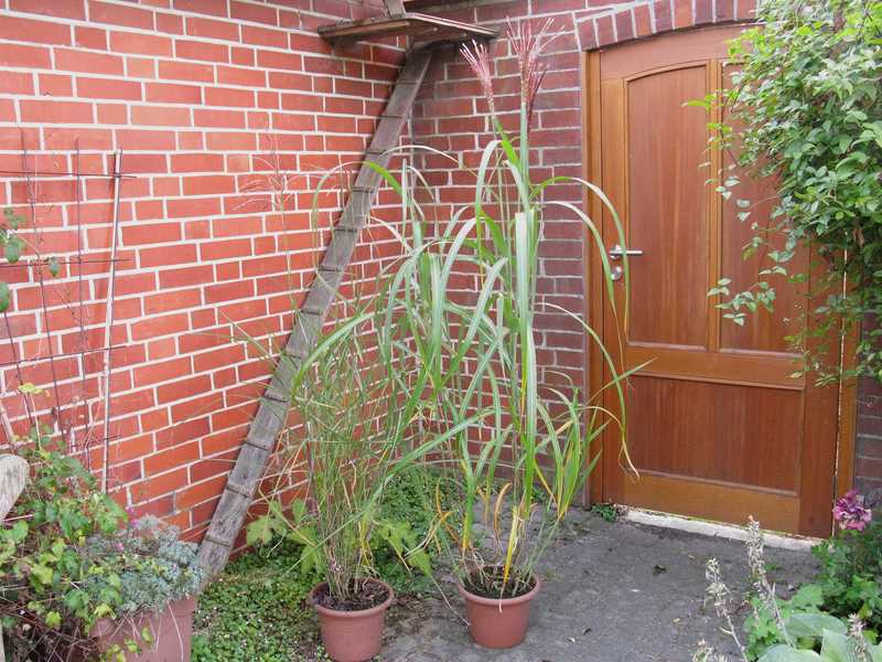 Hat eigentlich schon jemand einmal Miscanthussämlinge aufgepflanzt und weiter beobachtet.Die Pflanze rechts im Bild fiel mir letztes Jahr wegen dem auffällig breiten Laub auf (links zum Vergleich 'Graziella').Im Frühjahr habe ich sie in einen 5 L Co. getopft. Bis jetzt hat sie sich recht prächtig entwickelt, ist standfest, scheint jedoch einen eher ausladenden Wuchs zu bekommen.