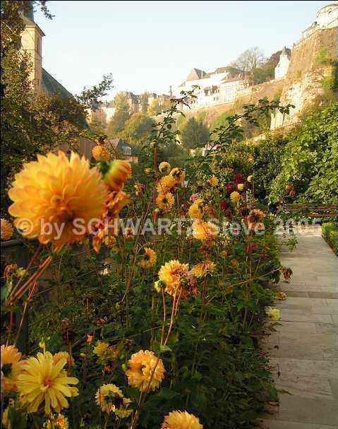 ::)Das Schloss oder Burg oder Festung wie man es auch bezeichnen möchte, wurde 963 auf dem hinter dem Garten liegenden Bockfelsen erbaut. Das war eigentlich der "Grundstein" für die Stadt Luxemburg. Der Garten wird aber angenommen ist erst später erbaut worden, villeicht durch das Kloster oder so.... war ja leider nicht dabei...