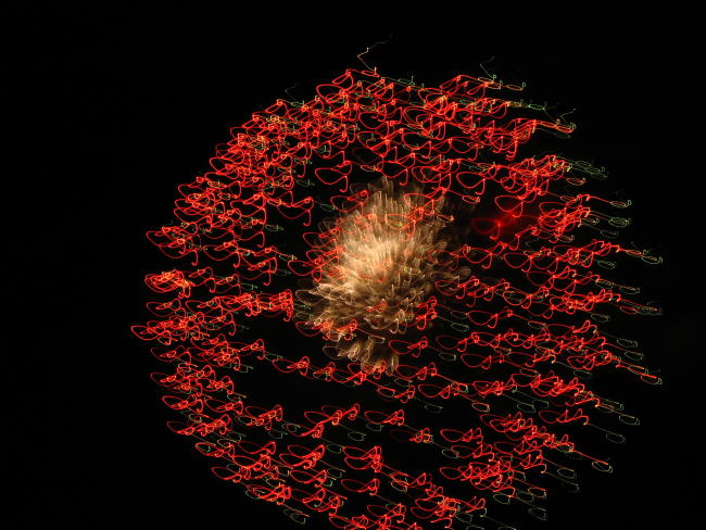Also ich würde da meistens nicht an Feuerwerk denken. Was macht die Kamera da selbständig? Ich stelle mal 3 Beispiele ein.Liebe Grüße UlliP.S.: Ich weiß, es hat nichts mit Natur zu tun, aber ich bin einfach neugierig