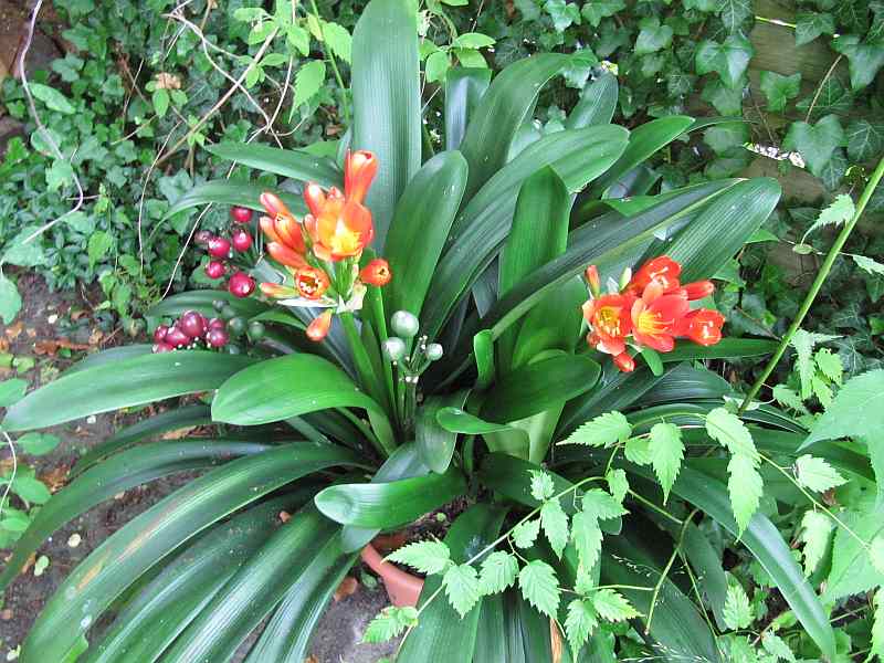 Der größte Teil meiner ausgewachsenen Klivien übersommert an der Nordseite unseres Hauses. Drei von ihnen blühen zum zweiten Mal in diesem Jahr, wobei die erste Blüte im Winter oder Frühjahr erheblich prachtvoller ausfiel.Einige Klivien habe ich auf den Fensterbänken im Haus stehen. Ich möchte sehen, ob ich einen Unterschied im Blühverhalten im Vergleich zu den außen stehenden Pflanzen erkennen kann. Wie steht es mit Euren Klivien? Befinden sie sich draußen oder drinnen während des Sommers?Viele GrüßeElke