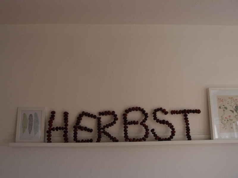 ich hab weder strauß noch kranz, weiß aber nicht wo hin sonst damit.gestern hab ich meinen mann angestellt zum löcher in kastanien bohren und dann auf dicken draht gefädelt und zurecht gebogen.