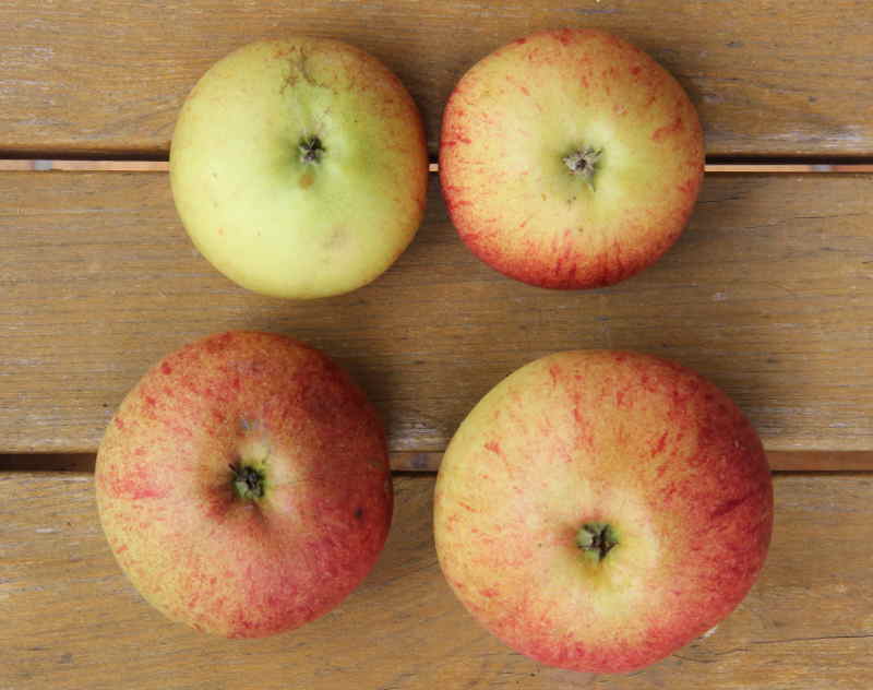 Da ich von Äpfeln ja nicht richtig Ahnung habe, tue ich mir mit einer Beschreibung auch etwas schwer. Aber mehr Bilder kann ich liefern. Die 4 zeigen mehr oder weniger die Streubreite, ohne die fauligen natürlich