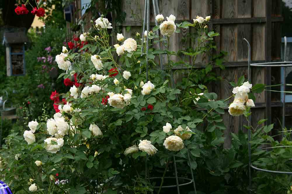 und das will ich auf gar keinen Fall.Zu dem Thema englische Rosen als Kletterer, da hätte ich schon Kandidaten. Die Gertrude Jecyll, dann die The Pilgrim. Beide mit wunderbaren Duft. Die The Pilgrim muß ich im Frühling immer weit zurückschneiden, damit sie im Herbst dann bei 3 m angekommen ist.lg. elis