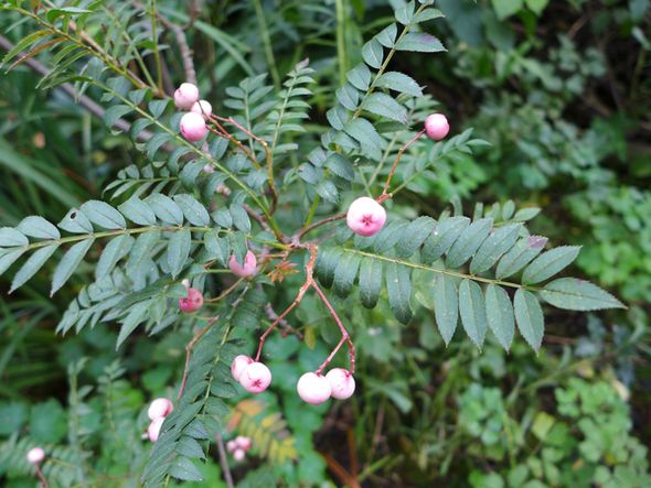 Sorbus vilmorinii: Ein ausgesprochen zierlicher, recht klein bleibender Baum mit zartgefärbten Beeren.Bei Schmuckkorallen nennt man diese Farbe Engelshaut