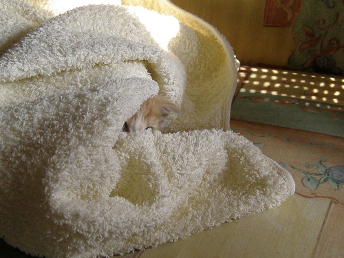 Himmel, diese kleine Ronja ist wirklich ein Zuckerkeks! Ich beneide Houdini wirklich. Ich möchte auch so eine kleine Katze haben, die sich obendrein noch in die frablich passende Decke versteckt.Mini war heute früh auch wieder da, hat diesmal brav gegessen. Rind mit Gemüse ist lecker, sagte er.Wir haben dann zusammen der Müllabfuhr zugeguckt, ich habe die Tonnen aufgeräumt und Mini wartete oben an der Haustüre und fragte ganz lieb, ob er vielleicht heute doch eine Milch haben könnte.Klar, konnte er haben - und trank sie wirklich diesmal aus.Die Wunde schaut super aus!NEMESIA, streicheln ist nur ganz vorsichtig oben am Köpfle möglich, es sei denn, man hat ihn vorher erwischt und reingetragen. IM Haus darf man knuddeln, streicheln, notfalls sogar den Hintern waschen...