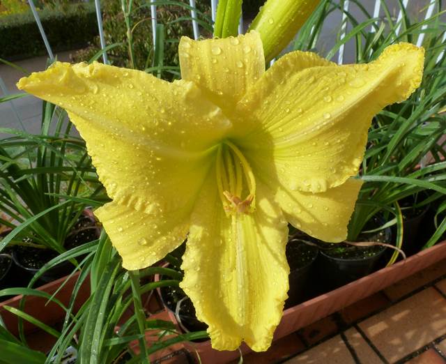 Klasse!Heute leider die letzte Blüte dieses immer perfekt geöffneten Sämlings. Sieht er nicht gut aus nach 13 Liter Regen in der Nacht bismorgens um 11 Uhr.