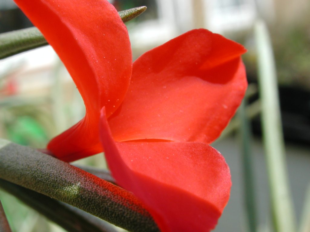 Mit kleinen intensiv gefärbten Blüten überrascht die kleinwüchsige Maxillaria sophronitis, die so ganz anders aussieht als ihre umfangreiche Gattungsschwesternschaft.