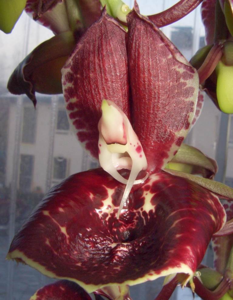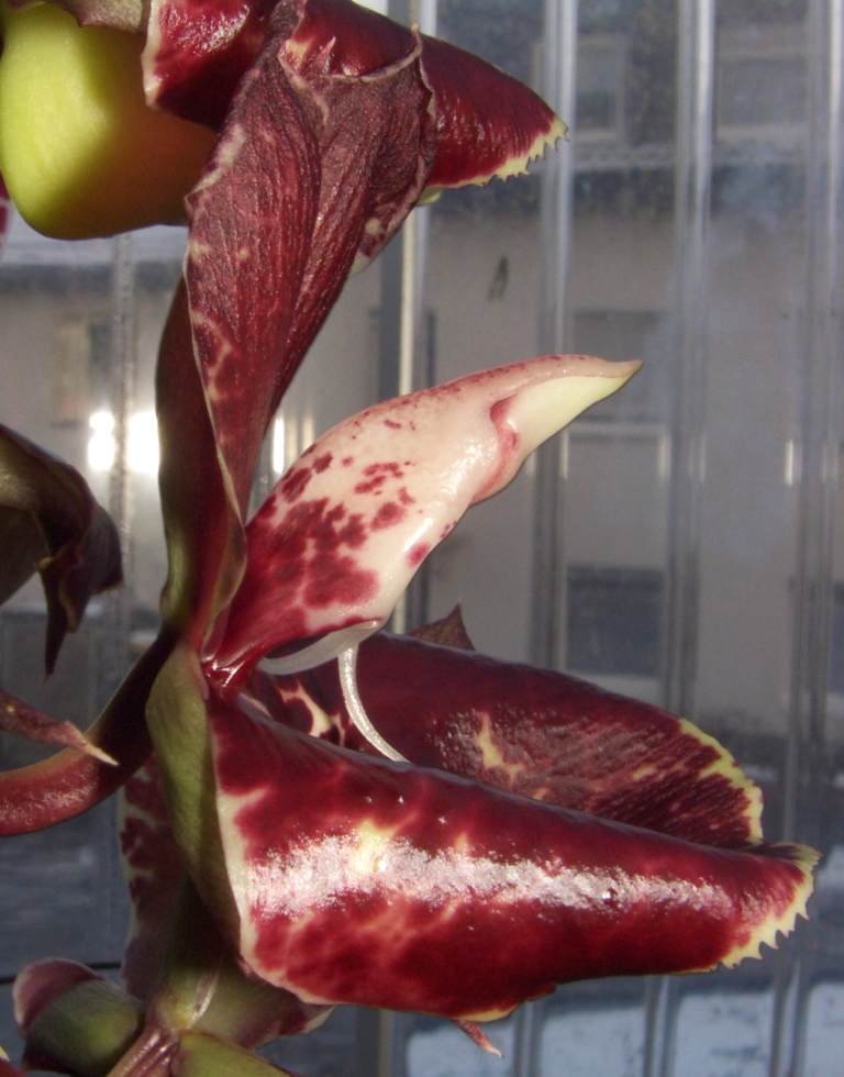 Zum Schluss noch zwei Bilder einer außergewöhnlichen Orchidee namens Catasetum. In dieser Gattung werden oft eingeschlechtliche Blüten ausgebildet, das heißt, die Pflanzen blühen entweder nur weiblich oder männlich. Dieses Catasetum blüht bei mir heuer männlich.