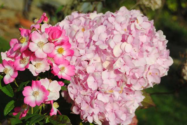 mozart schmiegt sich an eine fussballgrosse hortensienblüte
