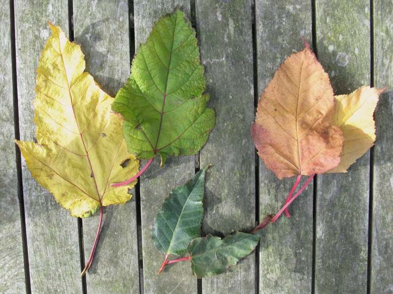 Drei verschiedene Herkünfte und alle Acer davidii!?!Vielleicht versteht ihr jetzt, warum ich manchmal an meinen Pflanzenkenntnissen zweifele. ;)Links das gestern gezeigte Exemplar, in der Mitte unten der zweite als Acer davidii gelieferte Heister und rechts das Laub aus meinem Garten.