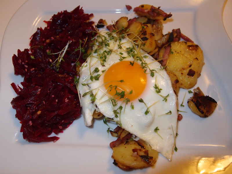 Das sieht lecker aus.gestern bratkartoffeln mit spiegelei und rote bete salat