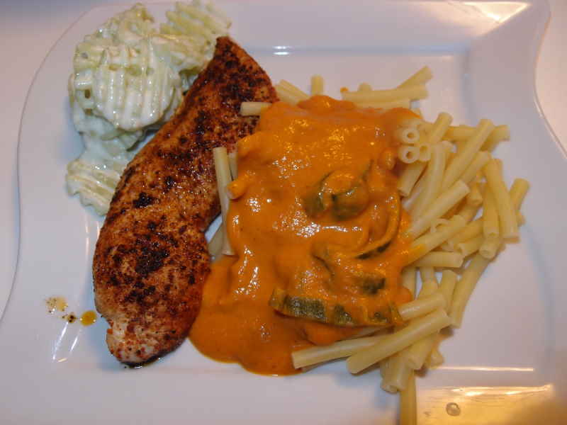 so, ich komm auch endlich wieder dazu. bei uns gabs die letzten tagen putenschnitzel mit maccaroni, paprikarahm mit zucchini und gurkensalat