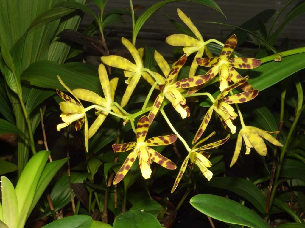 @shrimpy: Ich glaube nicht, dass es sich bei Deinem Dendrobium, wie sarastro vermutete, um Dendrobium phalaenopsis handelt, sondern eher um etwas in Richtung einer Form oder Hybride von Dendrobium bigibbum var. compactum. Dendrobium phalaenopsis ist bedeutend höher, wie dieses Bild aus dem Botanischen Garten in Bochum zeigt. Diese Art und ihre Hybriden sind echte Warmhausorchideen und im Zimmer nur aufwändig zu kultivieren. Dendrobium bigibbum ist da schon etwas einfacher.