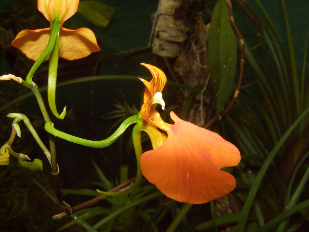 Nach einer Theorie, die ich mal gehört habe, sollen diese vielblütigen, wippenden Oncidium-Blütenstände mit ihren großen gelben Lippen Insekten-Männchen provozieren, die dann bei ihren Attacken die Bestäubung vollziehen. Hört sich zwar seltsam an, aber wer weiß?