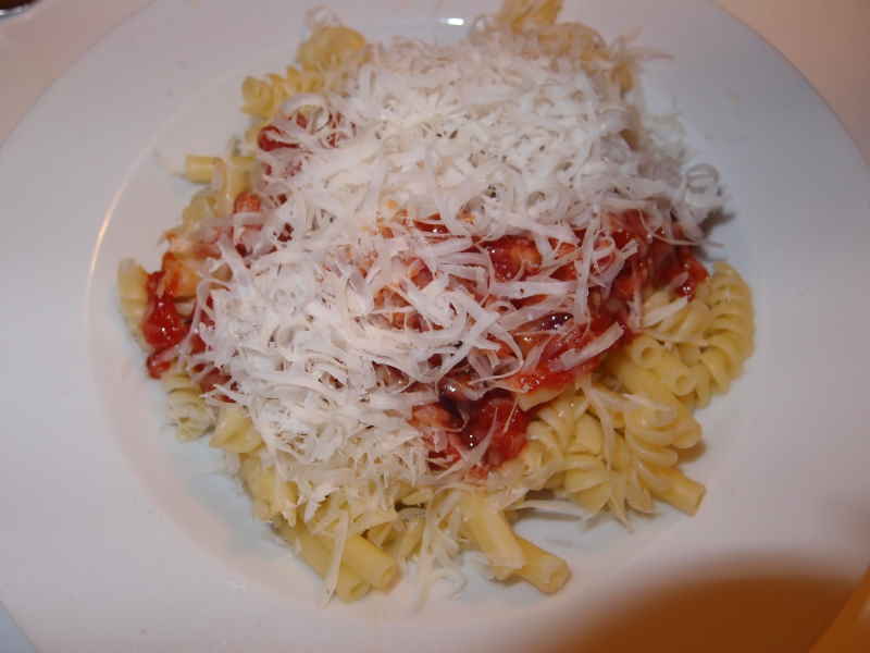 und gestern schnelle nudeln mit specktomatensoße und parmesan