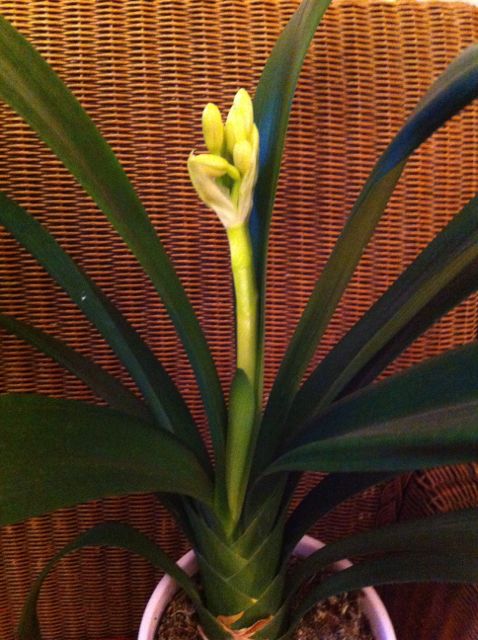 Meine Klivie steht ja sehr kühl. Sie blüht nie im Winter. Dafür beschäftigt sie sich mit der Ausbildung üppiger Samenstände. Ich nehme mal an, dass sie wie üblich im Frühsommer draußen blühen wird.