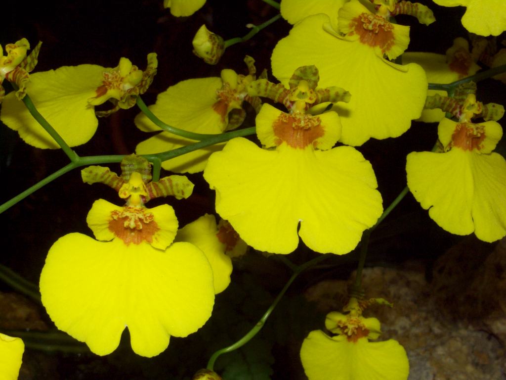 Nach einer Theorie, die ich mal gehört habe, sollen diese vielblütigen, wippenden Oncidium-Blütenstände mit ihren großen gelben Lippen Insekten-Männchen provozieren, die dann bei ihren Attacken die Bestäubung vollziehen. Hört sich zwar seltsam an, aber wer weiß?
