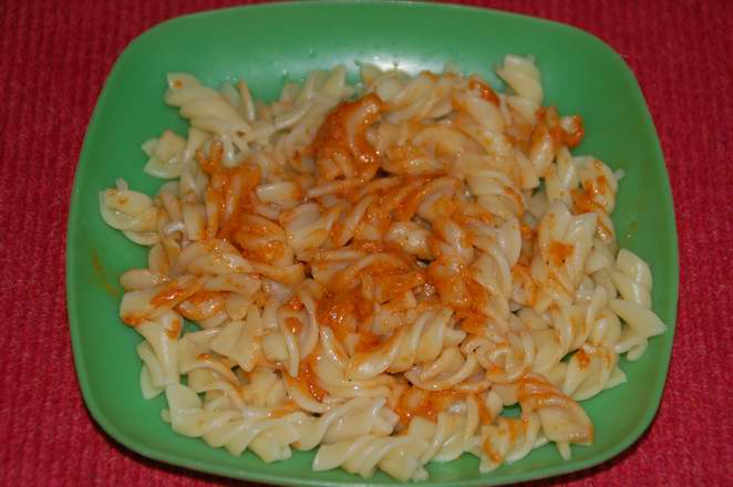 .Bei mir gab es heute ganz schnelles Essen: Spirellen mit Mandelpesto.