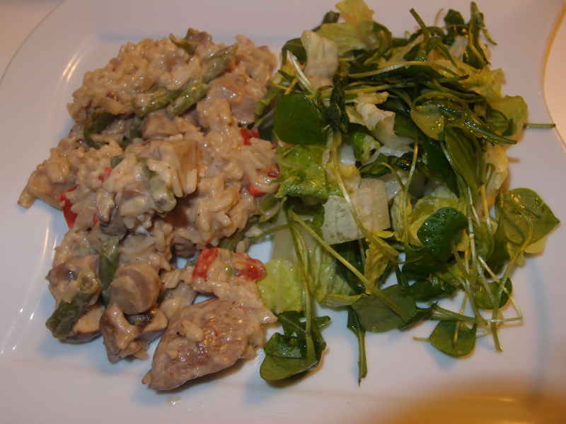 wir hatten die letzten tage reispfanne mit gemüse, pute und salatherzen mit portulak