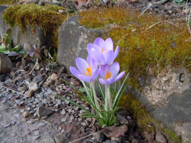 Crocus tommasinianus. Der hat sich die Ritze wohl selbst ausgesucht