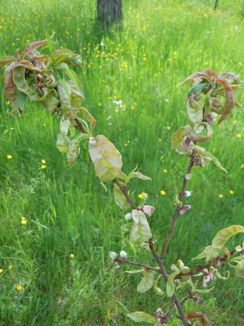 Ich habe es in diesem Jahr auch versäumt zu spitzen. Mein Kernechter vom Vorgebirge hat sehr gut angesetzt, und kaum gekräuselte Blätter. Meine Nektarine hat es übel erwischt. In den Jahren in denen ich Wasserstoffperoxydmischung gespritzt habe hatte er es kaum.