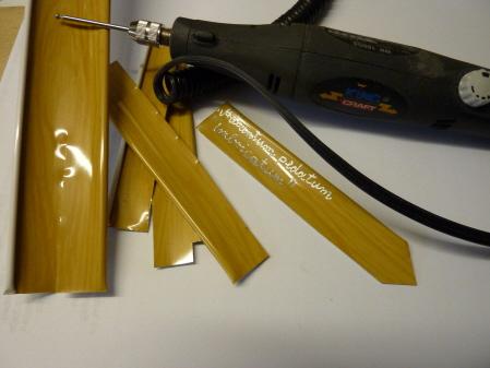 Hallo , hier meine Methode die ich zum ettiketieren meiner Pflanzen anwende . Alte Aluminiumrolladenlamellen oder auch Aluminium Sonnschutzrolläden ( gibt´s beim Schrotthändler oder auch beim Fenster/Rolladenbau Betrieb ) die schneide ich mit der Blechschere auf Stecketikettengröße und graviere mit einem Gravierstift ( den gibts ab und an günstig für ca. 15 - 20 Euronen bei div. Discountern ) darauf die Pflanzennamen . Ich hatte Glück und bekam einen Panzer mit ca. 20 Lamellen in brauner Farbe , mittlerweile sind diese aufgebraucht und ich benutze nun graue Lamellen. Ich finde vergleichbar haltbareres und preiswerteres gibt es nicht