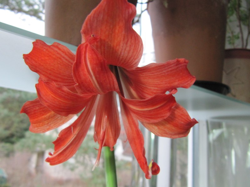 Ich habe heute ein kleines Töpfchen mit einem abblühenden Hippeastrum "rot, einfach" gekauft.