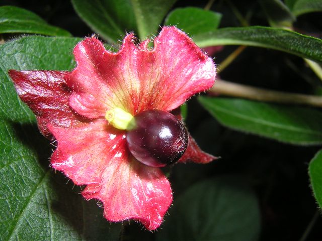 Kann ich nicht sagen.Da müssen Gescheitere her, Zauberin! Ich dachte erst an Leycesteria, aber die hätte glatte, graugrüne Blätter. Deine Blätter erinnern mich an Cestrum, den Hammerstrauch, aber ob der die hübschen Kelchblätter hat