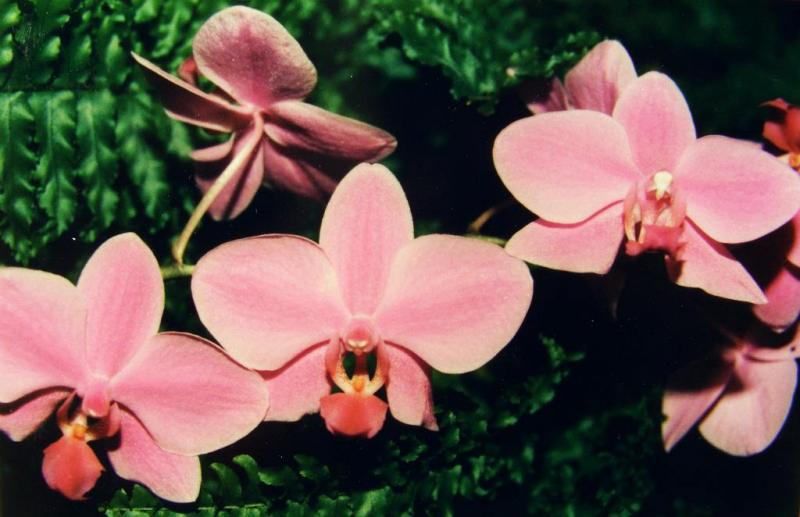 ... und Phalaenopsis schilleriana. Diese Arten brauchen etwas höhere Luftfeuchtigkeit als die Hybriden, was teils durch die mit Blähton und Wasser gefüllte Wanne unten im Blumenfenster, teils durch Sprühen mit Regenwasser gewährleistet wurde.