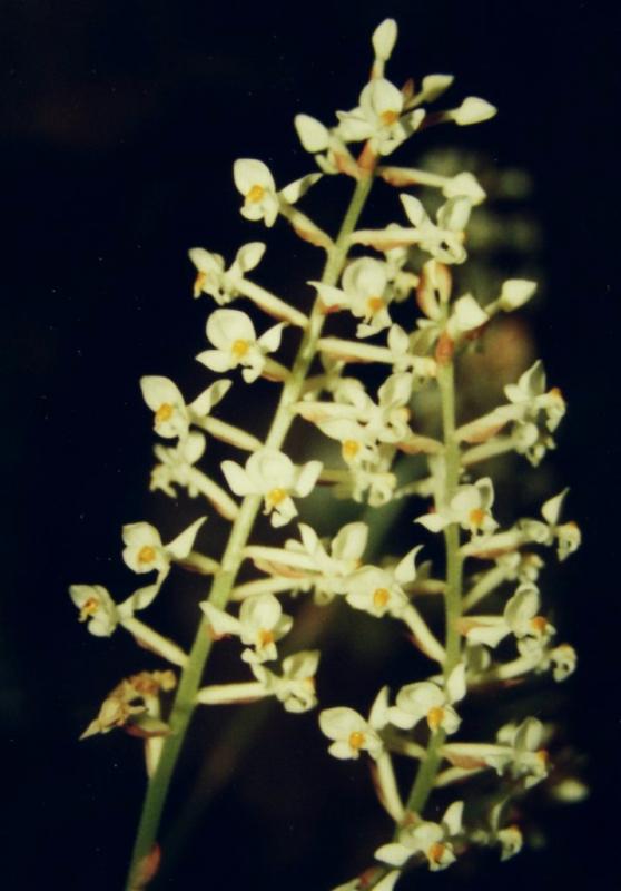 Aus Sämlingspflanzen zog ich eine nahe Verwandte der Phalaenopsis heran (hier die erste Blüte, auf die ich damals sehr stolz war