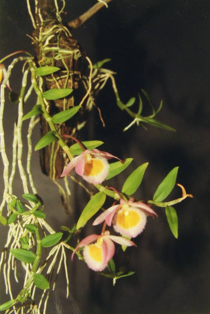 Damals erwarb ich auch eine winzig kleine Jungpflanze von Barkeria skinneri, die aber schon blühte (das tun sie sogar schon in der Flasche!). Sie bilden sehr viele Wurzeln und möchte deshalb nicht auf Dauer im Topf gehalten werden. Ich band sie hinterher, als sie ins neue Gewächshaus durfte, auf einen Block auf. Sie war der Beginn einer großen Faszination für diese kleine Gattung!