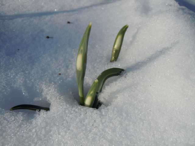 Aber es geht auch anders. Nahezu ideal, Schneeglöckchen G. elwesii im Schnee