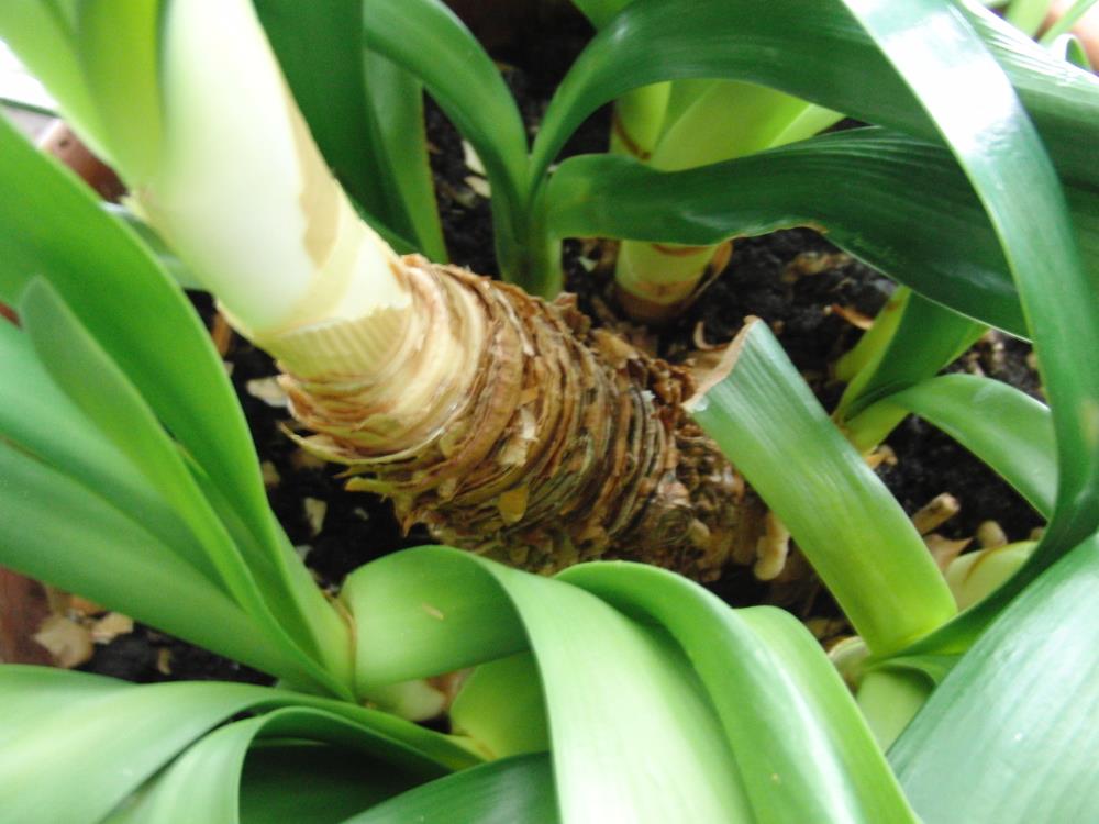 Der Haupttrieb dieser Pflanze ist länger, vermutlich ist sie älter als Klivie Nr. 1.Edit: Diese Pflanze hat 12 Kindel!