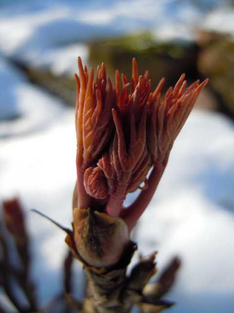 Ich bin auf das Foto gespannt. Auch eine Pflanze aus dem Baumarkt ist eine gute Sorte (aber keine gute Pflanze, die sicher anwächst). Wahrscheinlich eine Japanische Strauchpaeonie.Alte abgestorbene Zweige sollte man abschneiden, das hast du richtig gemacht.Man kann sogar eine ältere Japanische Pflanze durch Ausgraben zum richtigen Zeitpunkt (September) und Neupflanzen schräg tief in die Erde zu einem breiteren Busch machen.Eine zu hoch gepflanzte Veredelung sollte man sogar unbedingt im Herbst tiefer wieder einpflanzen, da sie sonst irgendwann abstirbt oder über der Erde abbricht.Danke für die ersten Tipps. Klar kann ich ein Foto einstellen, allerdings erst, nachdem der Schnee getaut ist, sonst wird man sich über ein eventuell falsches Einpflanzen nicht klar.Wenn die Pfingstrose so sein soll, wie sie ist, dann nehme ich das so hin. Bisher hab ich die abgestorbenen Äste entfernt.Vermutlich ist das eine Super- oder Baumarkterwerbung des Vorgärtners. Der hat sicher nie in "guten" Gärtnereien eingekauft, mangels Geld und mangels Interesse.In meinem Album ist jetzt ein Foto der Blüte zu sehen, mehr hab ich momentan nicht.