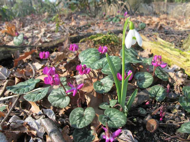 Cyclamen coum 'Marianne' und Galanthus 'Straffan'.