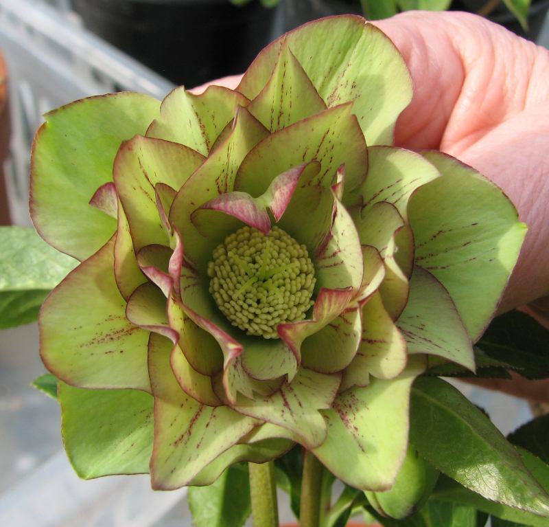 Ja, bei Delabroye würde ich auch gerne mal Helleborus kaufen wollen. Vor allem mit genügend Zeit und jemanden gemeinsam, der sich auch dafür interessiert.Beim Dehner in meiner Nähe gab es diese hier ......