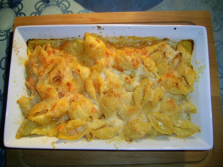 Nachdem mein Rechner eine paar Tage rumgemurkst hat, bin ich auch mal wieder da.@ Zwergarten: Deine Bilder bekomme ich leider nicht größer, aber sie sehen verheißungsvoll aus.@ alle: Das sieht wieder alles lecker aus und den Sprossenkohl werde ich auch probieren, falls ich ihn irgendwo bekomme. Und Aellas Rosenkohleintopf wollte ich auch schon immer mal nachkochen.Wir hatten am Montag Risotto mit Staudensellerie.Am Dienstag hatte ich Lust auf etwas ganz schlichtes: es gab Nudeln (Conchiglie) in Tomatensauce mit Ricotta, die mit Pecorino sardo, ein paar Semmelbröseln und etwas Butter überbacken wurden.
